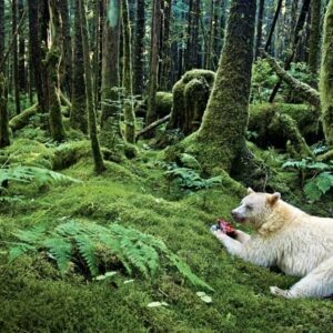 The Great Bear Forest Carbon Project covers more than 14 million acres in British Columbia and is home to the largest remaining intact coastal temperate rainforest in the world. This unique landscape protects the habitats of many species of organisms that cannot be found anywhere else on the planet, such as the Kermode bear—fully white black bears that hold a prominent place in the oral histories of the indigenous peoples who live in the project area. The Great Bear Rainforest project is a landmark project in Canada and represents the first project in North America on First Nation territory with unextinguished land rights and title. Great Bear balances human wellbeing with the improved management of the land, distributing carbon credit revenue among the Coastal First Nations group, a groundbreaking organization that brings together the 9 First Nation communities who inhabit the area. The project utilizes improved forest management practices to balance timber harvesting with the overall health of the forest in an ecosystem-based management regime. It allows for recreational use of the land, contributing to the important tourism economy. The creation of the Great Bear Rainforest project also designated many new cultural heritage sites, protecting them from logging.